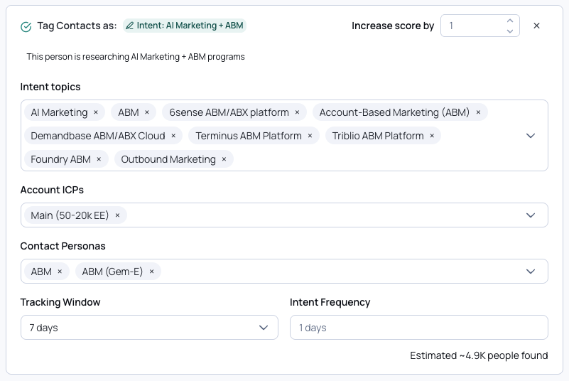 The example below shows how we created a mixed intent signal for “AI Marketing + ABM”