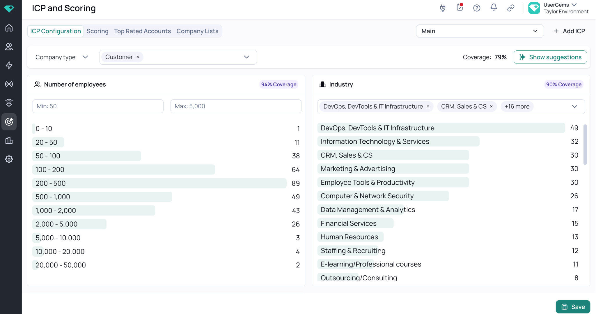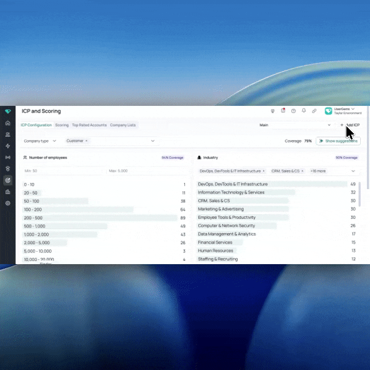 Many teams sell to more than one type of ideal customer. For example, different segments by company size, industry, region, or go-to-market motion. Multiple ICPs let you model those differences explicitly, so UserGems can more accurately identify, score, and prioritize accounts and people across each segment.