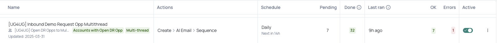 - Last: Last run date.